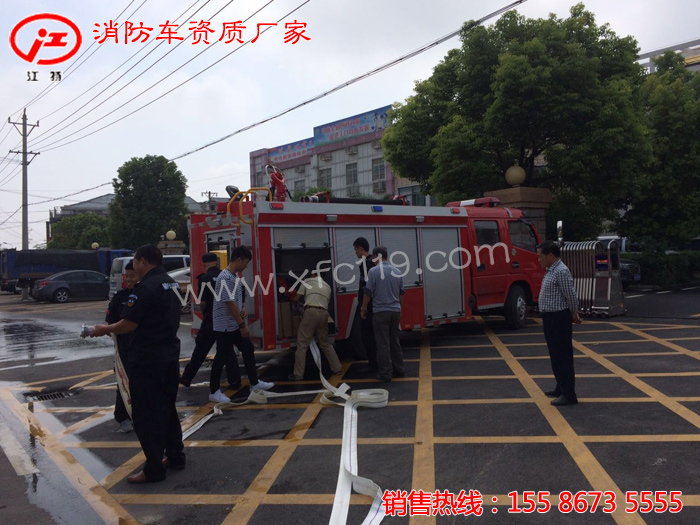9月22日送到阜陽市潁上縣江口鎮政府的招標采購車輛國五東風多利卡3噸水罐消防車收到當地領導的高度好評,順利交付使用方。