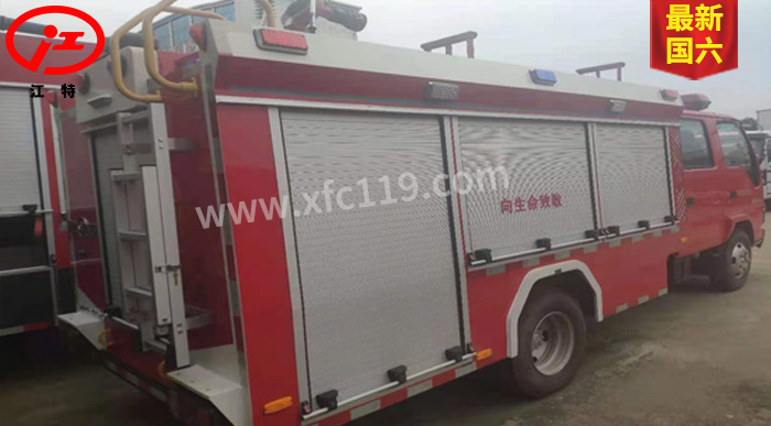 JDF5071GXFPM20/Q6型泡沫消防車為國六消防車車型,采用五十鈴QL1070BUHWY底盤改裝而成。整車由消防員乘員室和車身兩大部分組成,乘員室為原裝雙排,可乘坐2+3人,該車為內倉罐結構,車身前部為水罐+器材箱,后部為泵房。載液罐體為優質碳鋼,與底盤采用彈性連接,載水1385kg,泡沫容積637kg,裝備了CB10/30型消防泵,額定流量30L/S,車頂安裝的PL24型車用消防炮。該車輛結構緊湊,配置完備,機動性強,能夠及時應對企業,社區或重點消防單位的火情,可以第一時間形成小型戰斗力進行初期火災的撲救和人員疏散撤離。可廣泛應用于消防救援站,政府專職消防隊,企業專職消防隊等。