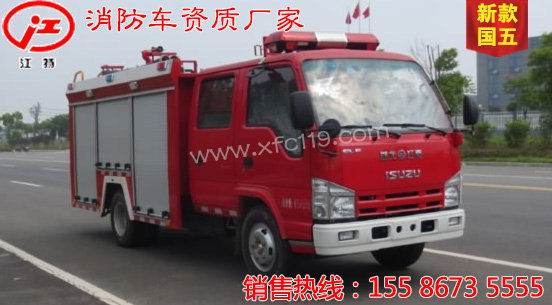 五十鈴江特牌JDF5070GXFSG20/Q水罐消防車,軸距3815MM,130馬力,上戶噸位1.9噸