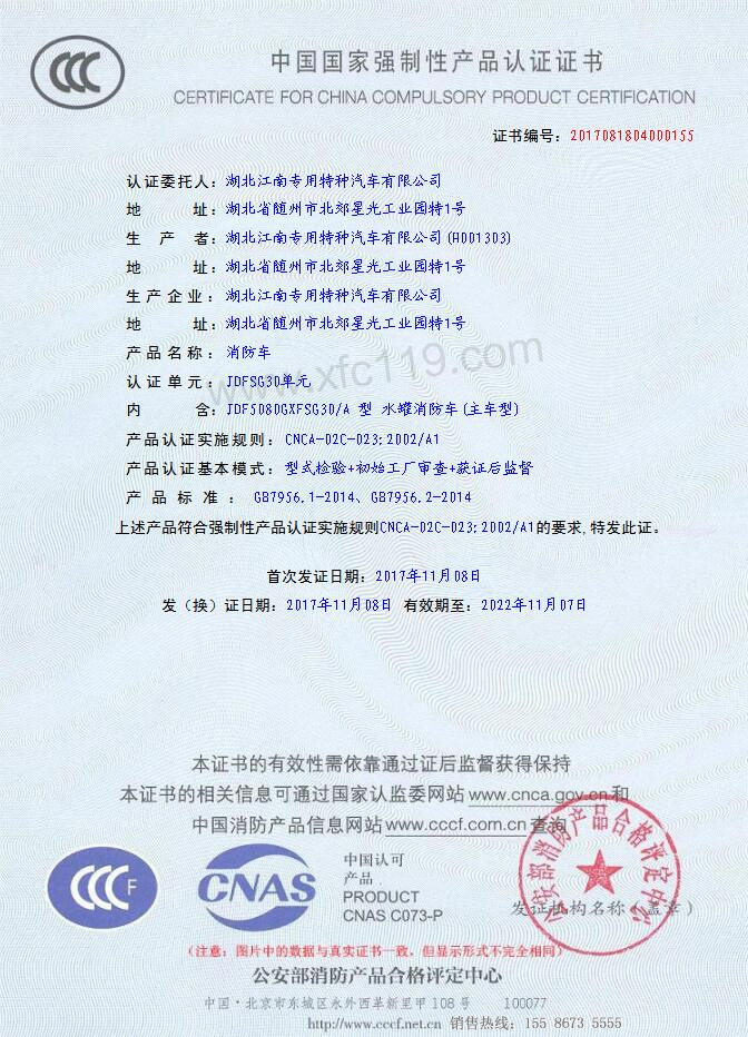我公司湖北江南專用特種汽車有限公司國五消防車3C于2017年11月08日更新一批消防車3C,目前在眾多消防車廠家里面國五消防車車型3C算比較齊全的消防車龍頭企業(yè),這也證明了我公司的國五消防車車型質(zhì)量,技術(shù)方面全面得到國家認可和好評。歡迎新老客戶來我廠考察選購消防車車型及邀約我公司參加各公司各政府單位消防車項目招標活動。