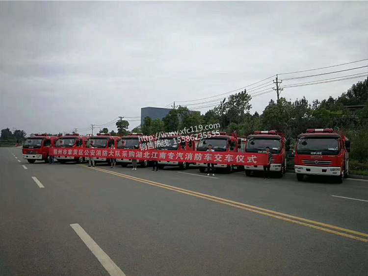 我公司湖北江南專用特種汽車有限公司于6月22日舉行贛州市章貢區(qū)公安消防大隊(duì)采購(gòu)消防車招標(biāo)項(xiàng)目的交車儀式。
