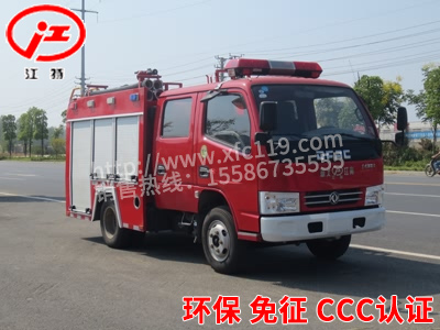 該車的另外一種國五消防車車型為雙排的小東風2600軸距的水罐消防車車型,這樣設計是方便救火人員乘坐,有限的長度加大了整車的使用率,上戶噸位0.6噸,可做到1.2-1.5噸。兩款車型都降低了對使用者駕照的要求,方便了企業(yè)和消防部隊對消防車使用的一些硬性條件。