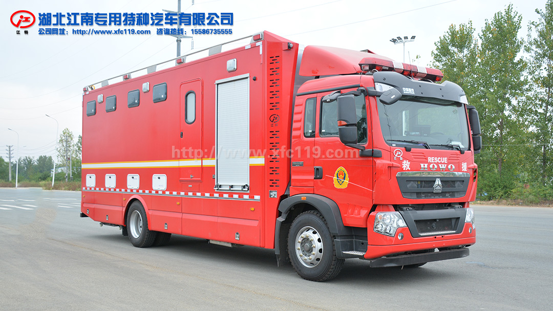 上裝廂體為整體式框架結構,廂體龍骨采用優質冷軋矩形管材焊接,廂體四壁和頂板外蒙皮為冷軋鋼板,廂體兩側上部外廓采用專用型材包角,滿足整車結構強度要求。整車優質烤漆工藝,主色為消防紅,可以根據用戶需求設計制式外觀車貼。