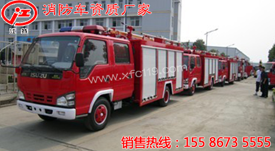 ※ 我公司水罐消防車產品有:東風銳鈴(2-3噸)消防車,江鈴(2-3噸)消防車,五十鈴(1.8-2.5噸)消防車,五十鈴(2-3.5噸)消防車,五十鈴(3.5-5噸)消防車,五十鈴(6噸)消防車,東風多利卡(3.5噸)消防車,東風145(5-6噸)消防車,東風153(6.7噸)消防車,東風天錦(7噸)消防車,重汽豪沃(8噸)消防車,重汽雙橋(12-16噸)消防車,重汽重型(20-24噸)消防車,五十鈴雙橋(11-12噸)消防車等。